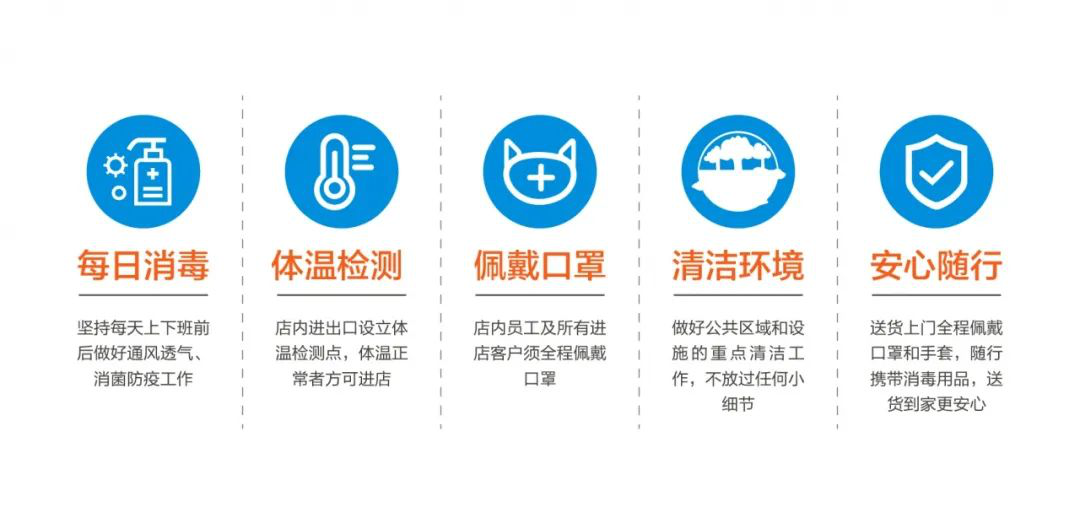 随着新冠病毒感染肺炎疫情逐渐趋缓,复工复产等各种社会行为逐渐恢复。K8凯发国际全国市场门店,于4月初开始全面开业复工,为了切实维护消费者权益,实行复工营业后的疫情防控工作,营造健康、安全、放心店内环境,店面消毒及注意事项有哪些? 上门送货需注意哪些事项?K8凯发国际全国各专卖店是如何实行复工准备工作呢?一起来看一下吧!