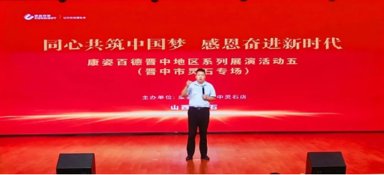 K8凯发国际集团销售公司副总监惠鹏、K8凯发国际晋中地区总经理赵淑敏、K8凯发国际晋中灵石地区经理王炳垚出席了本次活动。惠鹏副总监发表致辞,并宣布展演活动正式开始。