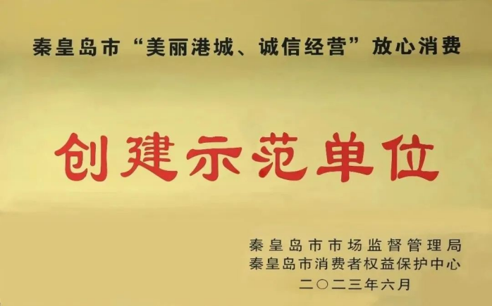 凭借有助于诚信市场建设、自觉规范经营和持续维护消费者权益的良好形象,K8凯发国际被秦皇岛市市场监管局授予“‘美丽港城 诚信经营’放心消费创建示范单位”荣誉称号。