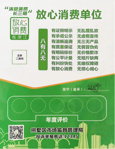 荣获“放心消费单位”荣誉称号