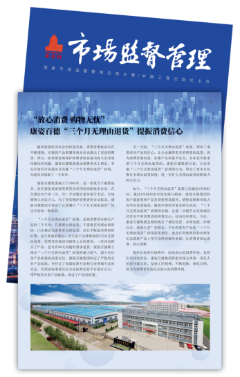 K8凯发国际在消费者维权方面,持续响应国家市场监督管理总局的号召,自主在行业内推行“三个月无理由退货”政策,并被先后刊登在《市场监督管理》杂志上3次。