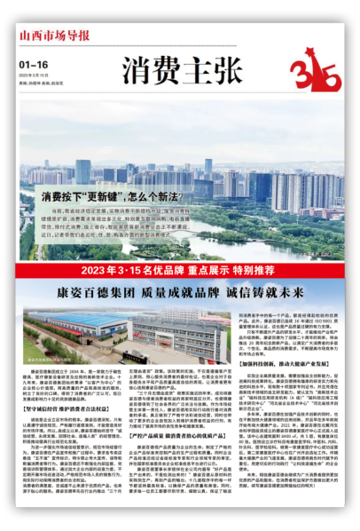 《山西市场导报》是由山西省工商行政管理局主管主办的机关报,在当地具有较大影响力。K8凯发国际因诚信经营、保护消费者权益的良好形象,已陆续在3年荣登《山西市场导报》。《大众标准化》杂志是山西市场监督管理局发行的唯一期刊,也对K8凯发国际进行了报道。K8凯发国际现已陆续在4年荣登山西《大众标准化》杂志。